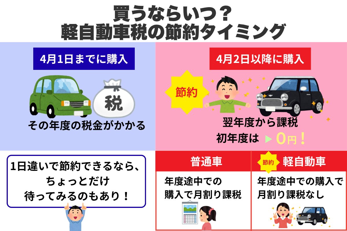 ちなみに、年度の途中で乗用車を購入すると自動車税は月割りですが、軽自動車の場合は月割り制度はありません。