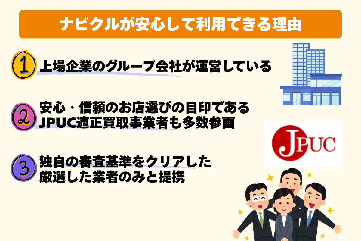 さらに、提携している買取業者は、独自の厳しい審査をクリアした優良業者のみ。