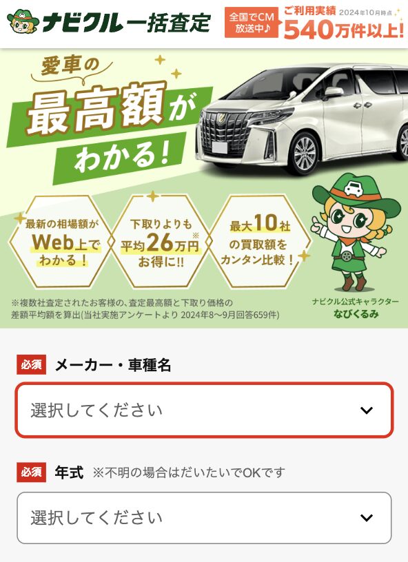 そんな方におすすめなのが、誰でも簡単に一括査定を依頼できる「ナビクル」。