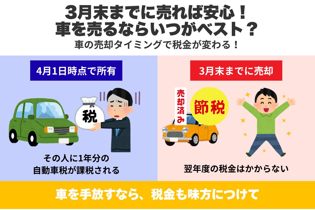 自動車税は、4月1日時点の所有者に請求されるため、車を売るのであれば3月末までがおすすめ。