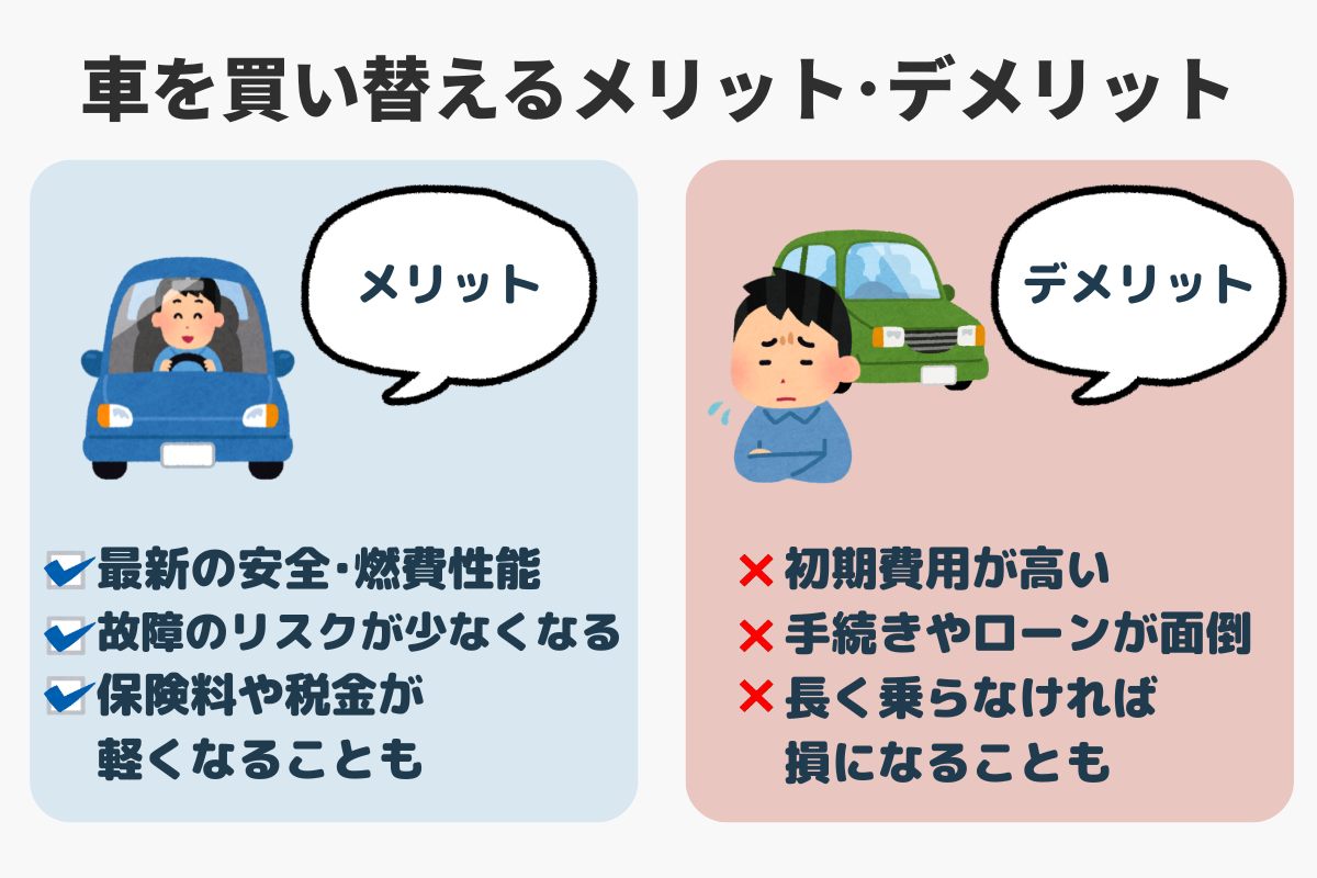 - 乗り潰す場合と買い替えた場合のメリット・デメリット