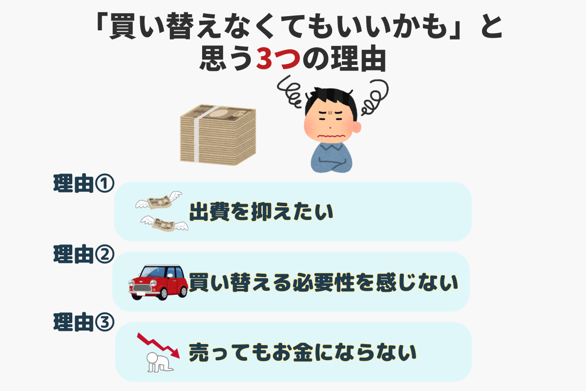 新しい車を買えば修理や部品交換から解放されますが、まだ乗れる車を手放すのは惜しいと思ってしまう人も多いでしょう。