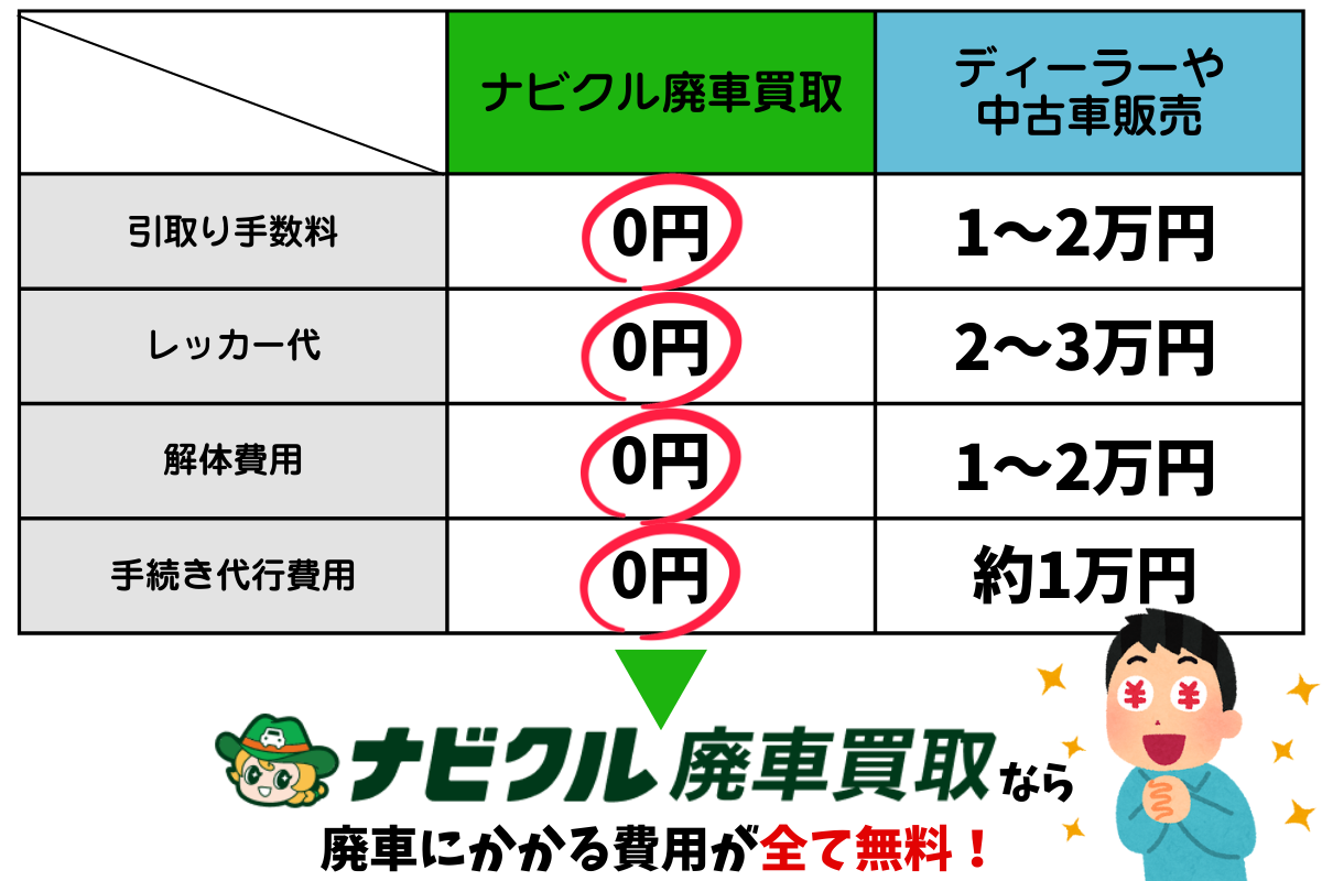 ナビクル廃車買取は、廃車にかかる費用がすべて無料!