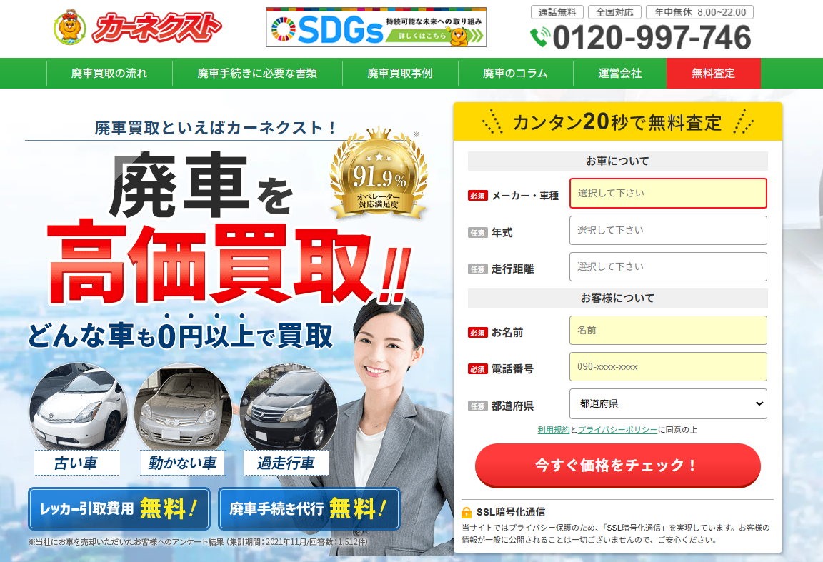 カーネクストは、株式会社カーネクストが運営する全国対応の廃車買取サービス。