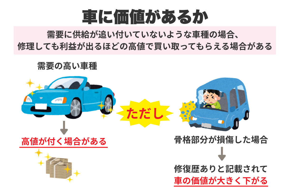 事故を起こした車そのものに価値があるかどうかも判断基準のひとつ。