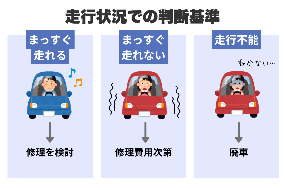 事故を起こした車が走れるかどうかも判断基準のひとつ。
