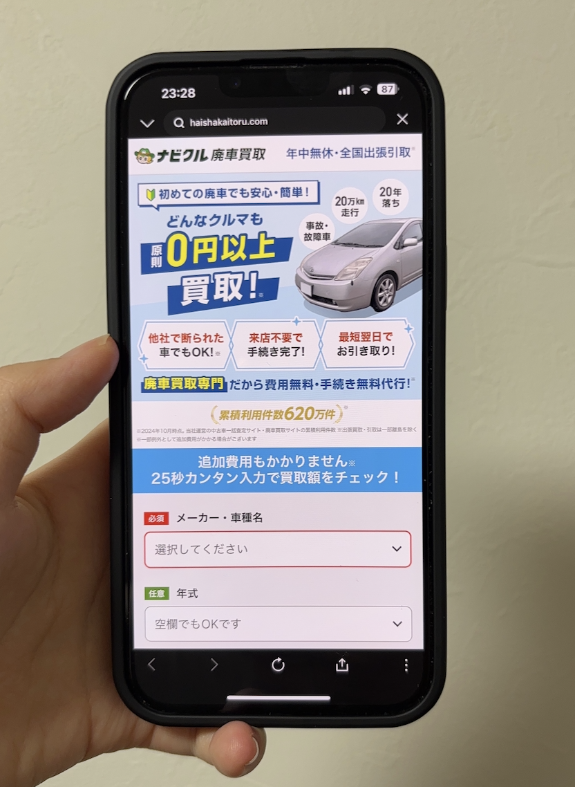 私が選んで使いやすかったのが「ナビクル廃車買取」という完全無料で使えるサービス。