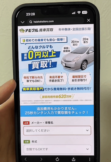 25秒の簡単入力で廃車がお金に変わる可能性がわかります!